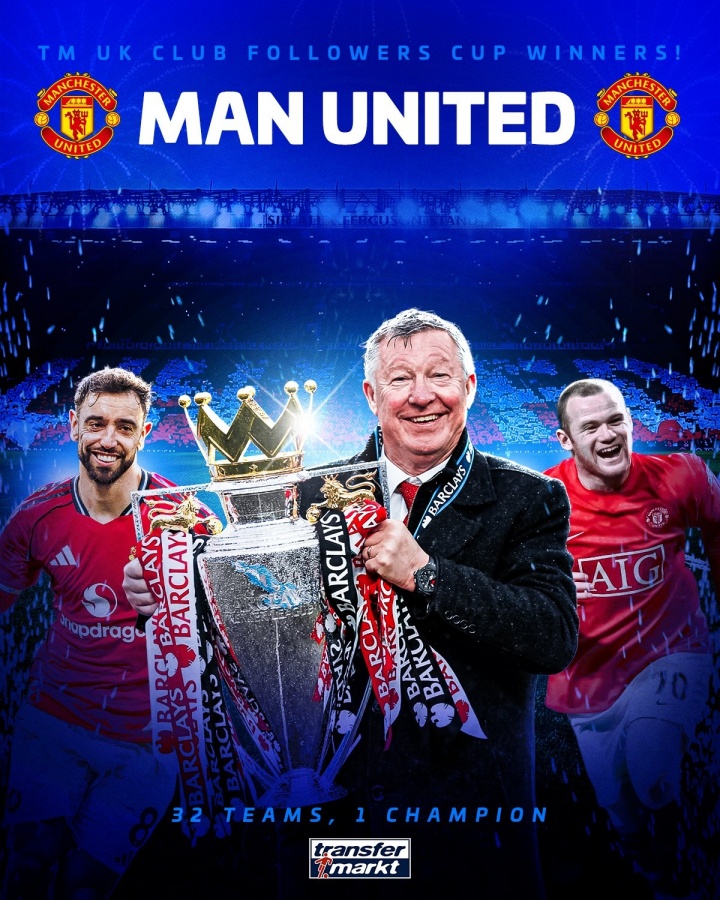 02月12日讯 德国转会市场今日宣布,在经过上万名德转用户投票后,曼联在总决赛 中轻松战获胜 物浦,获得了德转英国俱乐部球迷杯,成为“英国最大球队”。