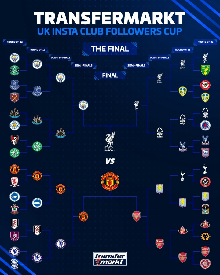 总决赛 吸引了超过1万名球迷投票,最终曼联轻松击败死敌利物浦夺魁 。红魔在准总决赛 中出回合了阿森纳,而利物浦则战胜了曼城。完整赛程表如下所示。